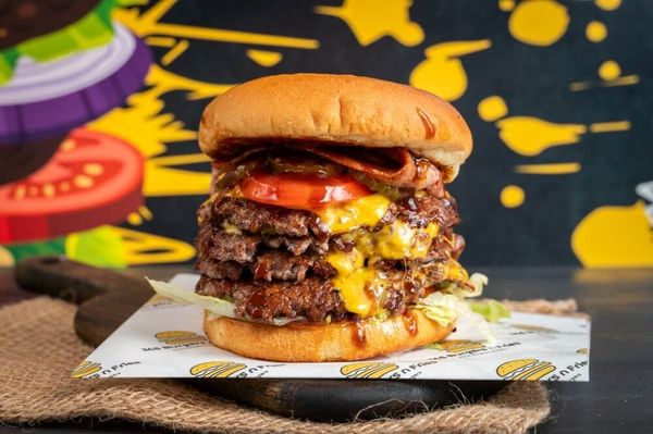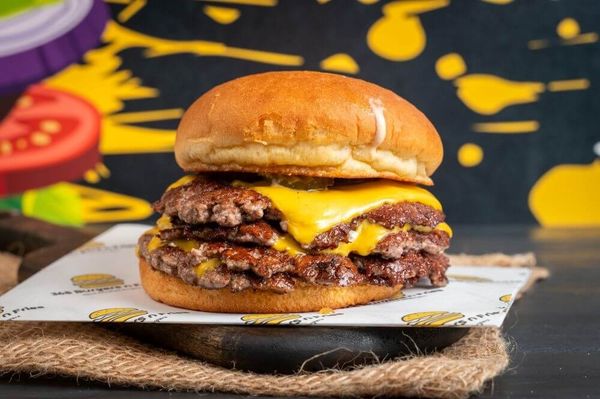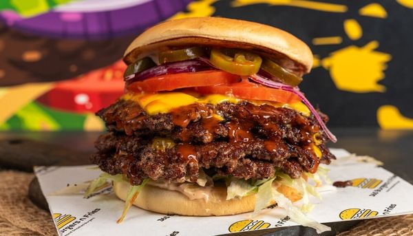Massive beefy goodness with four smashed patties topped with 4 slices of melted American cheese, Jalapenos, crisp lettuce, juicy tomato, onions, and a kick from our 365 spicy smash sauce!