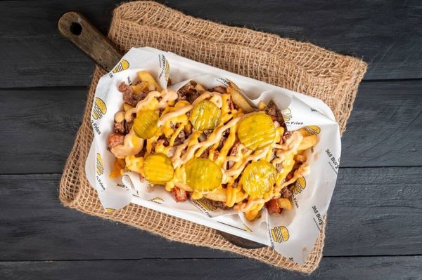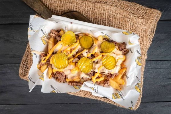 Crispy fries topped with chopped smashed beef patty, grilled onions, BandB pickles, American cheese sauce and 365 smash sauce.
