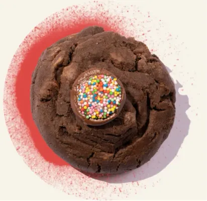 Decadent Fudge Brownie Cookie topped with a cheeky chocolate freckle for your enjoyment.
