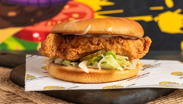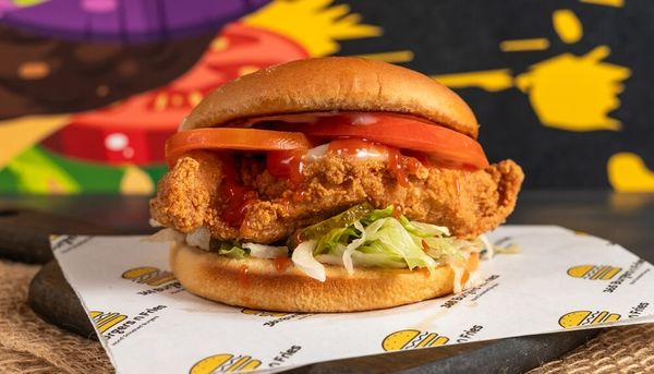 Made with potato bun, spicy Southern fried chicken fillet, BandB pickles, lettuce, tomato, mayonnaise and tomato sauce.