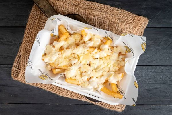 Crispy fries topped with American cheese sauce